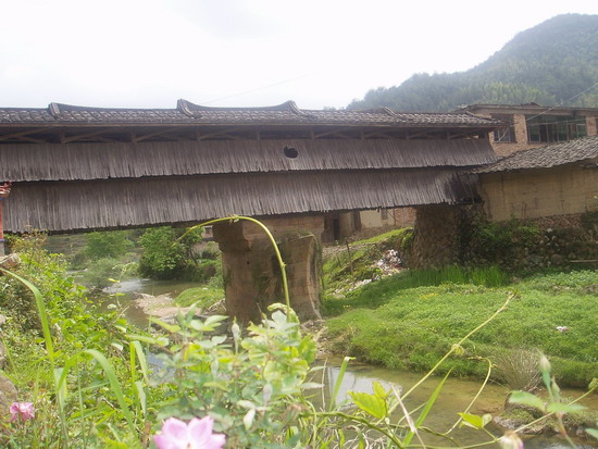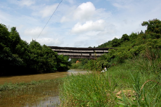 长寿桥,俗名山茶桥,始建于清乾隆十二年(1747年),后毁,1945年重建,建桥主墨师傅为黄以柱。重建后的长寿木拱廊桥长25.8米,宽4米,离茶溪水面高6.5米。