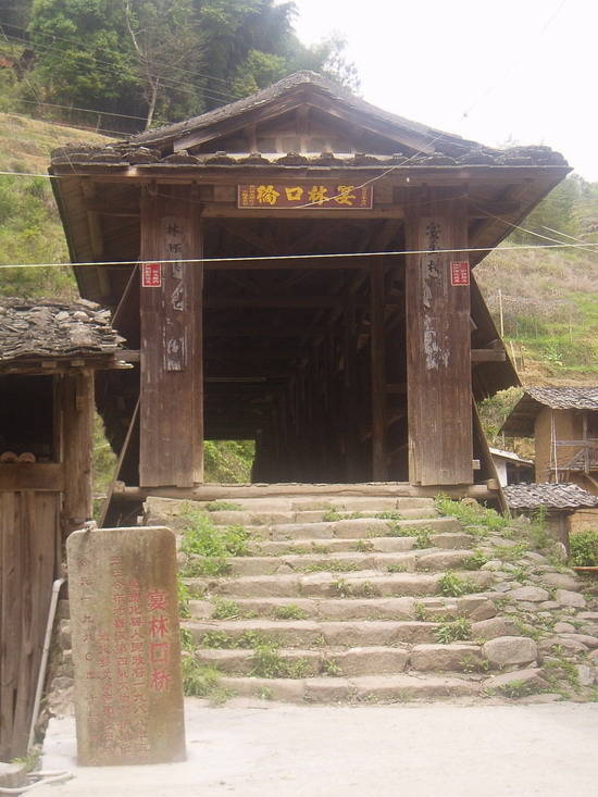 宴林口桥位于盖德乡林地村。又称上林桥,俗称暗林口桥。始建于清乾隆四十七年(公元1782年)。光绪三十年(公元1904年)被洪水冲毁,后由乡民林仁礼重建。石址廊屋式木质结构,长27.3米,宽3.4米,通道2.15米,高3.95米,通道两侧有长板坐椅,全桥由44支木柱(分成四列)撑架,桥外有两层重叠的雨披,桥的北侧有迎仙宫l座。1959年再次修建。