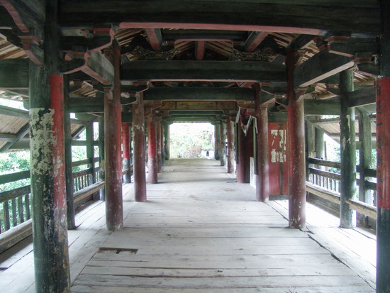 该桥长24米,内宽5.5米,中间通道宽4.6米,置有佛龛,桥亭斗拱分5层160斗,顶梁和斗拱刻有虎豹狮象和花卉纹饰,桥梁为15根巨杉横跨,下有6层纵横交错的垫木。[page]