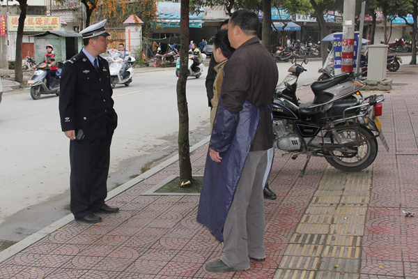 期间,郑贵军大队长带队深入辖区路尾巷、德新街、程田寺路口等易堵路段,对违规停放的机动车车主进行劝导,并发放温馨提示卡。同时,郑贵军大队长积极与驾乘人员、商铺店主沟通,并提出建议:各店主要主动作为,做到“谁家门口谁家管”,规范停在自家店铺门口的摩托车,做到摆放整齐、统一朝向;同时,要禁止小车违规停在人行道上,保证人行道的畅通。