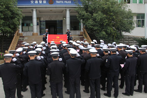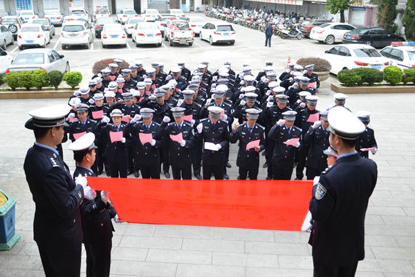 为迎接党的十九大胜利召开和金砖会晤顺利举办,坚决打好道路交通安保攻坚战。3月21日,交警大队组织全体民警、警务辅助人员举行了庄重的“战前动员”集体宣誓仪式。