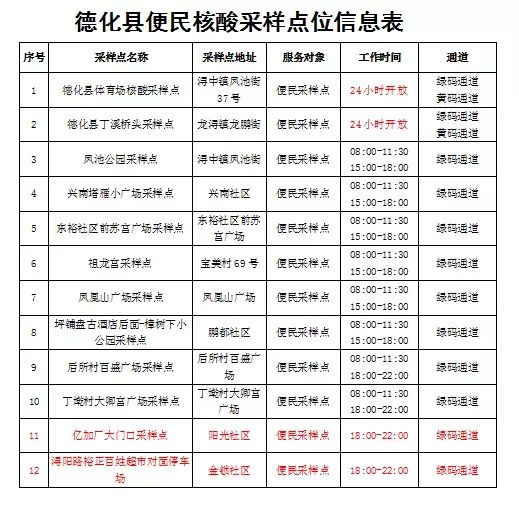 b体育 便民核酸采样点位信息表