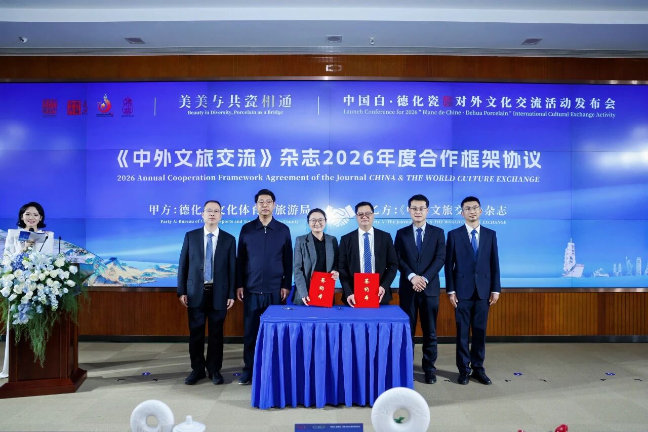 发布会上,b体育 文化体育和旅游局与《中外文旅交流》杂志签署了2026年度合作框架协议,本次合作将聚焦德化白瓷国际传播英文专刊,系统打造“海丝文化高地”和“国际瓷都”新名片,有效拓宽宣传推广渠道,助推德化陶瓷文化与文旅资源走出国门,走向世界。