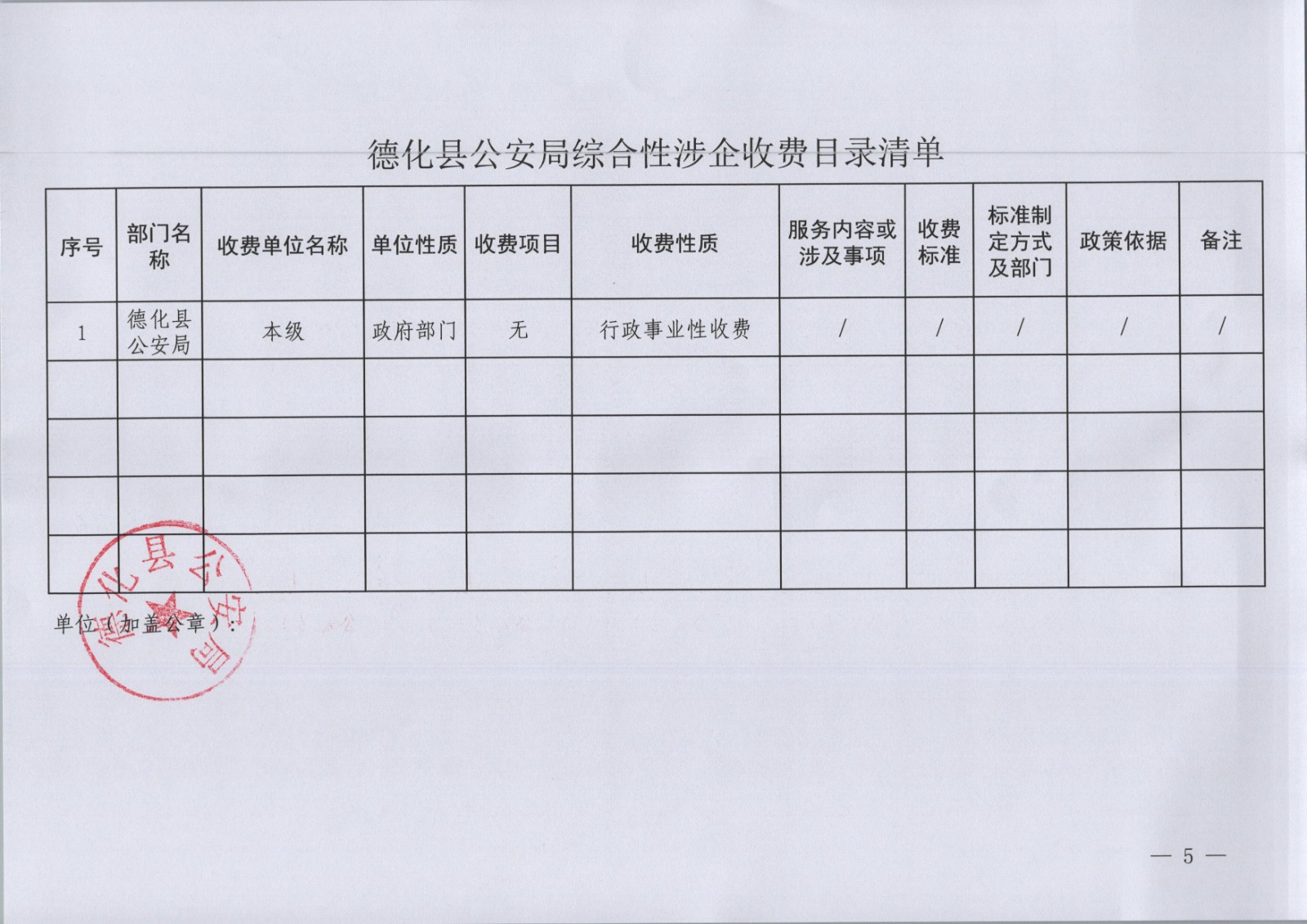 公安局综合性涉企收费目录清单