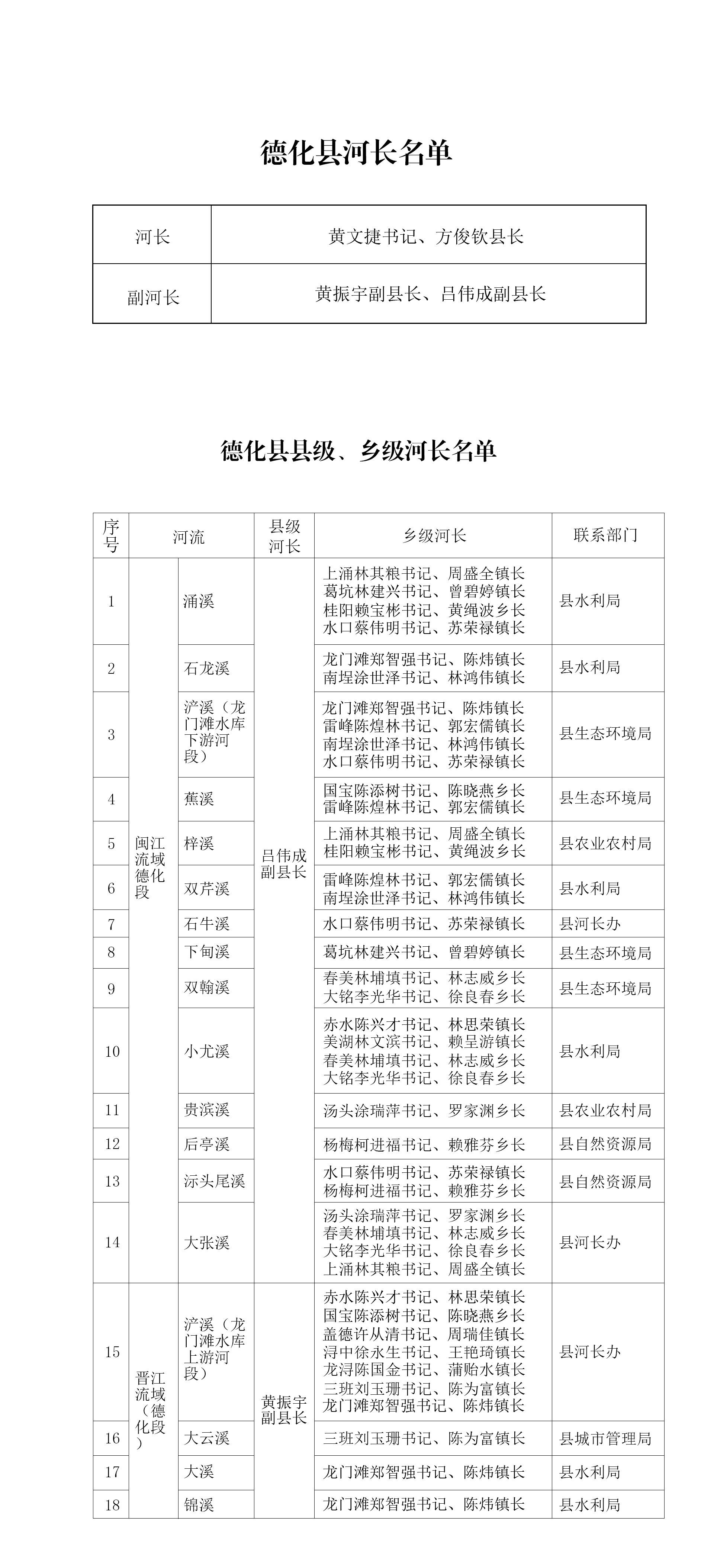 河长名单(2024年6月)(每月更新)
