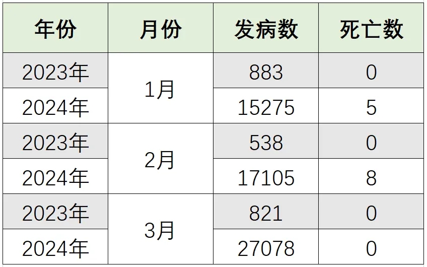 全国百日咳2024年第一季度与2023年同期比较