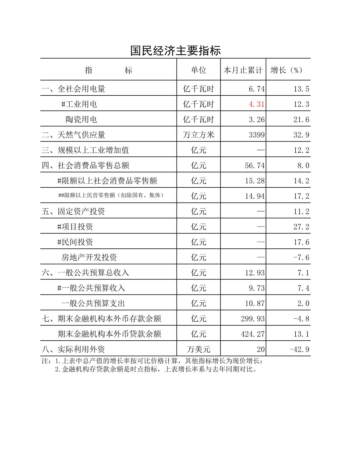 国民经济主要指标一览