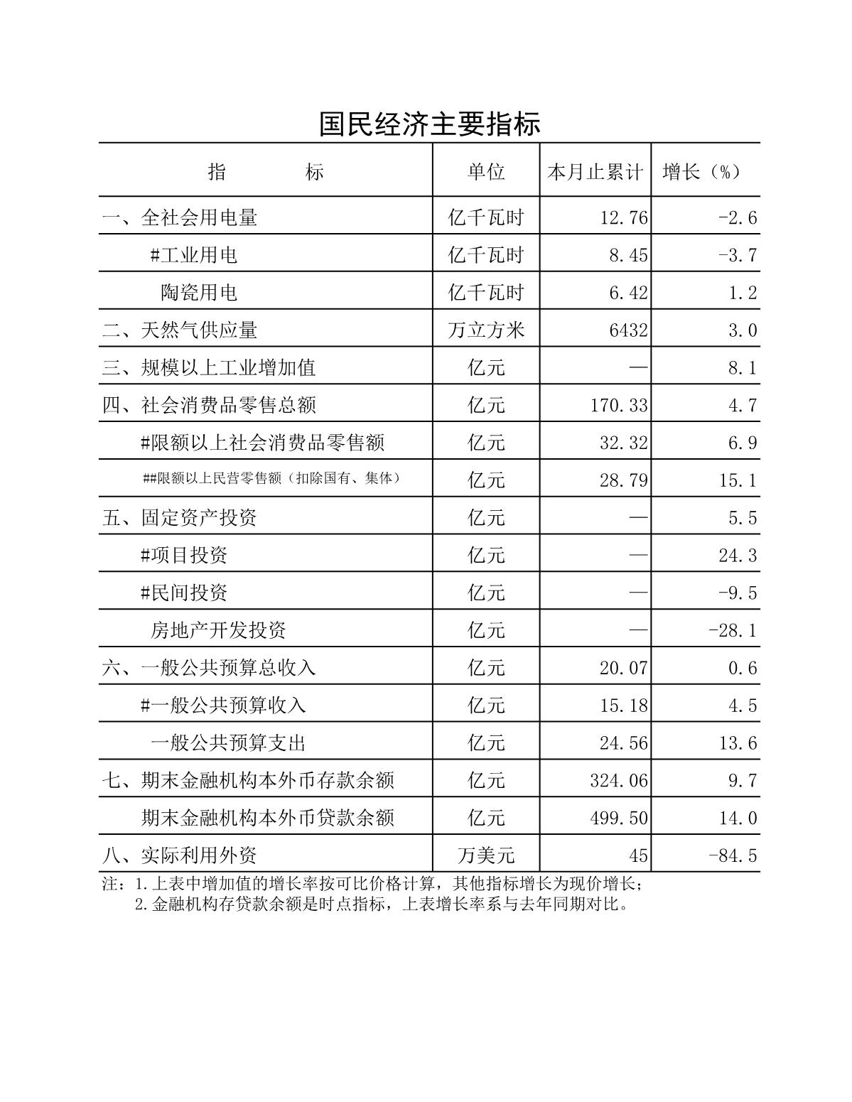 国民经济主要指标一览