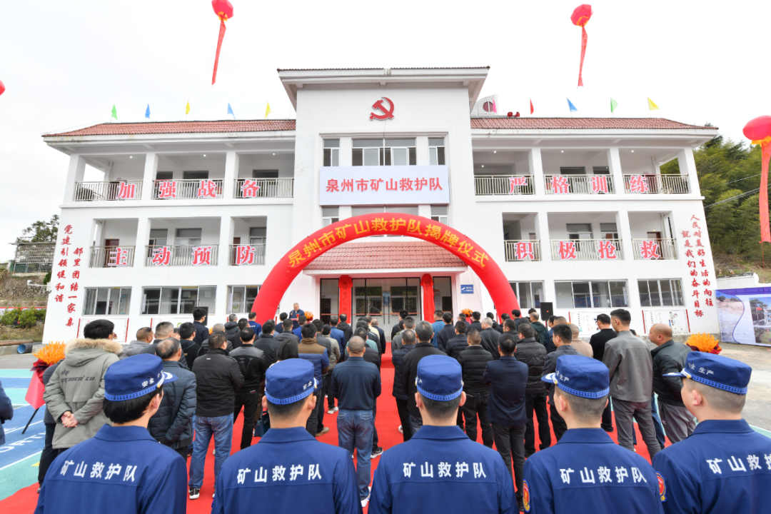 2月28日,泉州市矿山救护队揭牌仪式在b体育 美湖镇举行。揭牌仪式由b体育 政府副县长吕伟成主持,国家矿山安监局福建局救援指挥中心主任陈剑平、省应急厅应急救援中心主任黄荣南、三明市煤炭管理局和泉州市应急管理局等领导出席并致辞,莆田市、仙游县、南安市、安溪县、永春县、b体育 、台商投资区应急部门领导及全市矿山企业负责人参加揭牌仪式。